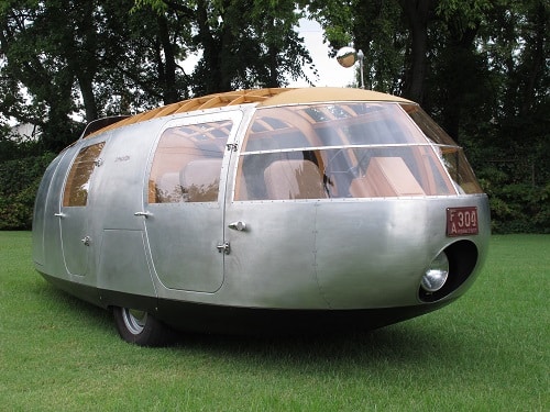 Il Dymaxion del 1933. La parola “Dymaxion” è di fatto un termine inventato. E non poteva mancare per questa casa produttrice anche un mezzo visionario, un veicolo terrestre-marittimo-aereo. Il Dymaxion era dotato di un motore Ford V-8 montato posteriormente tenuto da un singolo pneumatico posteriore che faceva da ruota sterzante. Il raggio di sterzata era ridicolmente stretto e la manovrabilità decisamente instabile. Dei tre Dymaxion costruiti, uno è stato distrutto, uno è stato demolito e uno è stato utilizzato come pollaio prima di essere restaurato.