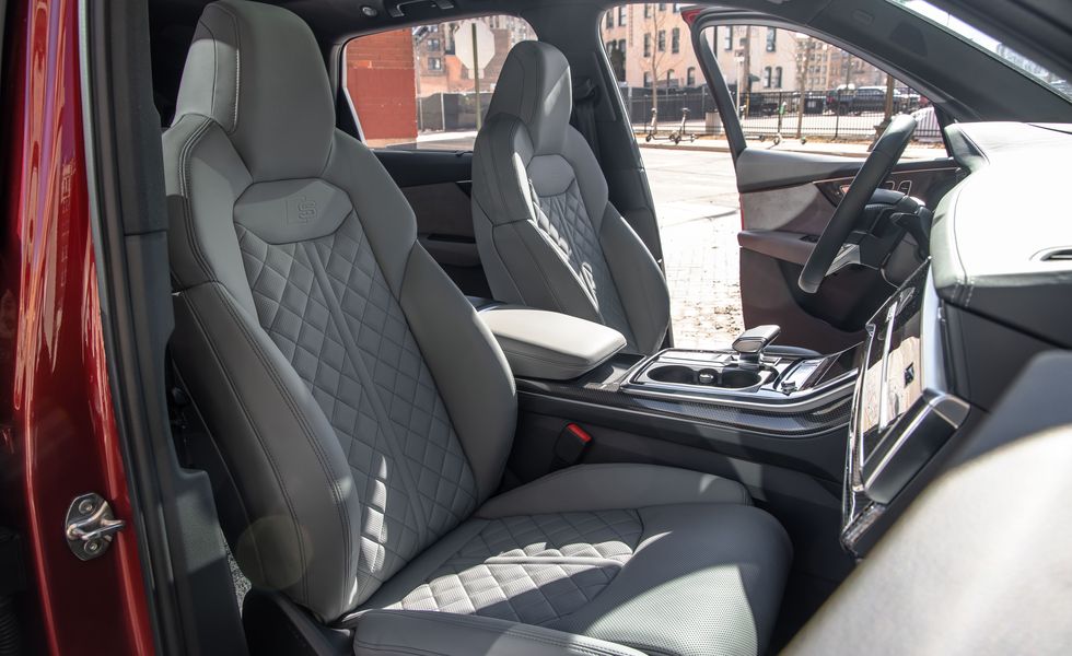 La SQ7 offre gli stessi interni pratici della Q7, ma con alcuni tocchi speciali tra cui sedili più sportivi con finiture in pelle. Una terza fila di sedili è un equipaggiamento standard sull’SQ7, come lo è nel Q7. Per questo si definisce senza ombra di dubbio un mezzo progettato per famiglie e, comunque, per sette passeggeri, anche se la terza fila non è troppo spaziosa.