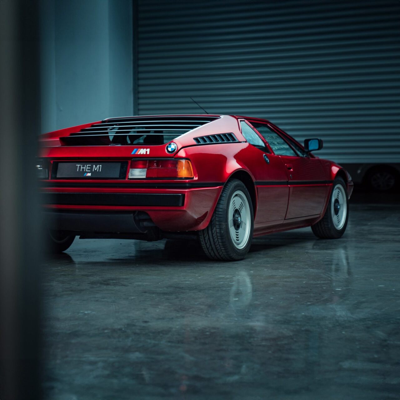La BMW M1 destinata a passare sotto il martello del banditore era originariamente rifinita in Blau su interni Schwarz. Ora si presenta nell’attraente tonalità Brillantrot, un rosso di grande effetto scenico, con interni neri. Completata il 9 ottobre 1980, fu poi inviata alla filiale francese del marchio. Si ritiene che, successivamente, prese la strada degli Stati Uniti d’America, dove ricevette un tachimetro con indicazione delle miglia.