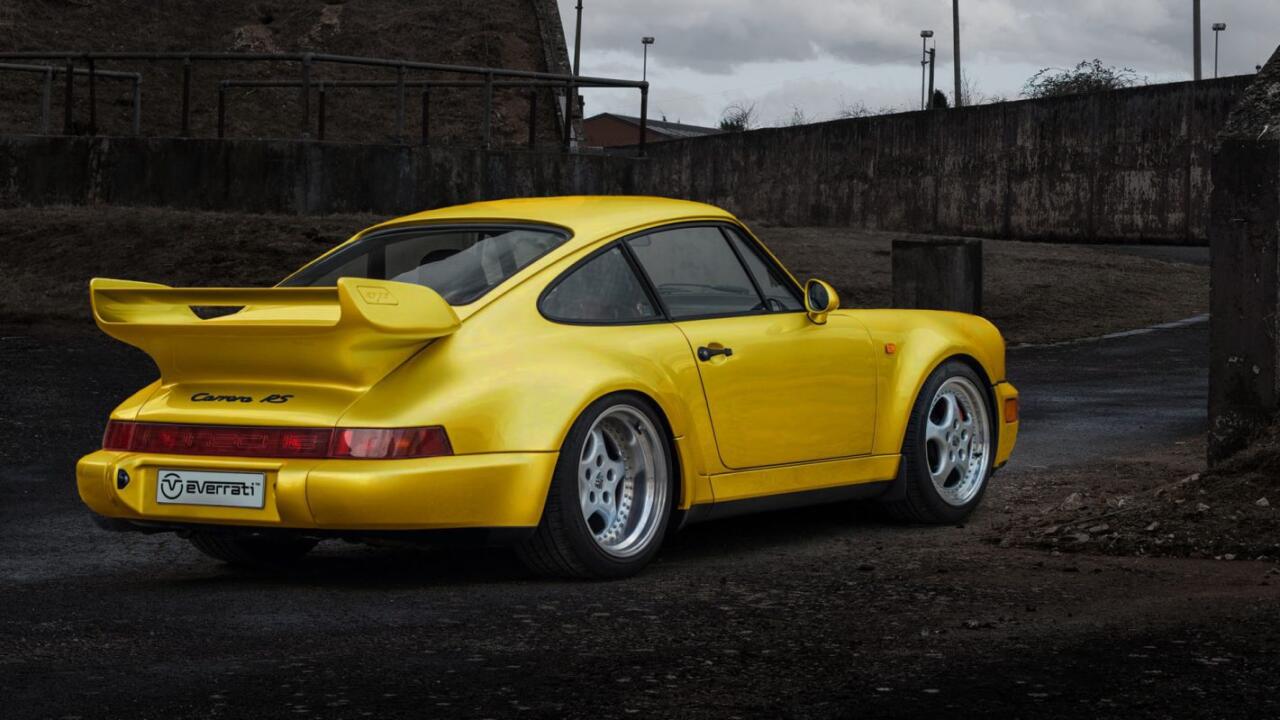 Questo omaggio Everrati si basa su di una Porsche abilmente restaurata, che aveva originariamente un corpo più stretto. L’edizione ispirata alla RS rispetta i principi di leggerezza e prestazioni della RSR, con la rimozione dei sedili posteriori, l’aggiunta di un roll-bar posteriore e l’installazione di leggeri sedili per il conducente e il passeggero. Il tutto rivestito con la pelle e con il carbonio. All’esterno, sono montate ruote da 18 pollici HRE e la carrozzeria in fibra di carbonio si distingue per un pacchetto aerodinamico completamente nuovo, con uno spoiler posteriore più grande, insieme ad uno splitter anteriore modificato.