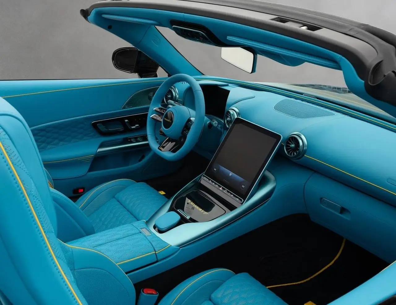 All’interno, l’abitacolo di questa SL 63 è rivestito in pelle blu con cuciture gialle, coprendo gran parte delle superfici interne. Questo schema cromatico si estende al volante. Sul piano meccanico, il motore, un V8 biturbo da 4 litri, è stato potenziato fino a 850 CV, superando la versione E Performance ibrida plug-in recentemente introdotta sul mercato. Nonostante non siano stati forniti dettagli specifici sulle prestazioni migliorate, è chiaro che l’intento di Mansory non si è limitato al miglioramento estetico, ma ha incluso anche un aumento delle capacità di performance della Mercedes-AMG SL 63. Non ci resta che attendere ulteriori novità su questo modello, disponibile in edizione limitata.