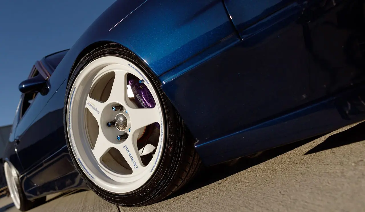 I parafanghi originali restano intatti ma ora ospitano ruote Regamaster Marquis Promoda da 18 pollici nella parte posteriore, e da 17 pollici davanti con freni Z32. Come per ogni auto da drift, sono state necessarie delle modifiche alle sospensioni con elementi regolabili come tensione e trazione.