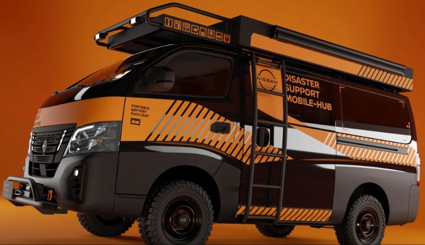 Il Disaster Support Mobile-Hub, che ha prende spunto dal Caravan, un altro minivan venduto in diversi mercati, è stato trasformato in un veicolo commerciale più pesante. È stato equipaggiato con un verricello, pneumatici resistenti, un portapacchi e una parte posteriore scorrevole. L’interno è stato riempito con una vasta gamma di apparecchiature per le comunicazioni. Inoltre, Nissan ha installato una batteria proveniente dalla Leaf sul tetto per alimentare i componenti elettronici.