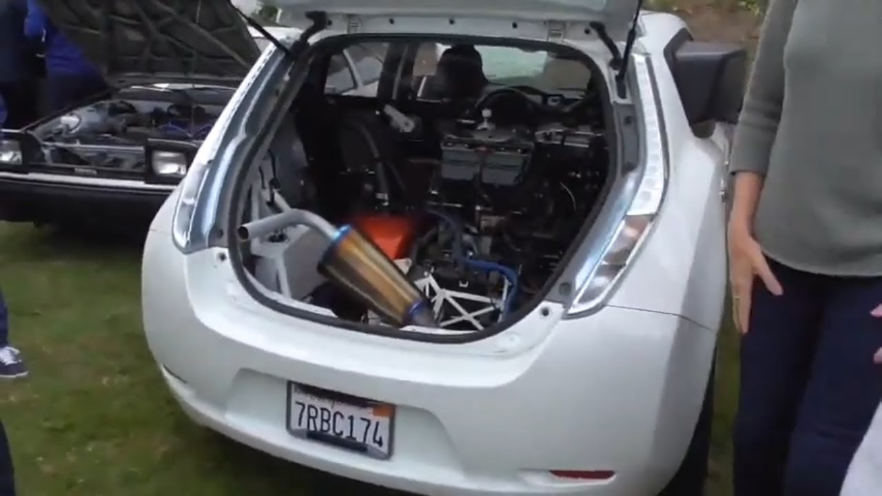 L’auto più straordinaria di oggi sarà sicuramente una Nissan Leaf. Non ci credi? Si tratta di un’auto tipicamente da città, potrebbe avere anche, per molti, un bell’aspetto. Ma se sei un ingegnere meccanico con delle idee bizzarre quest’auto “innocua”, può trasformarsi in una belva che urla. Come? Infilando il motore di una Kawasaki nel bagagliaio di una Leaf. Il risultato è una Leaf ibrida con un motore che urla a 13.000 giri/min.