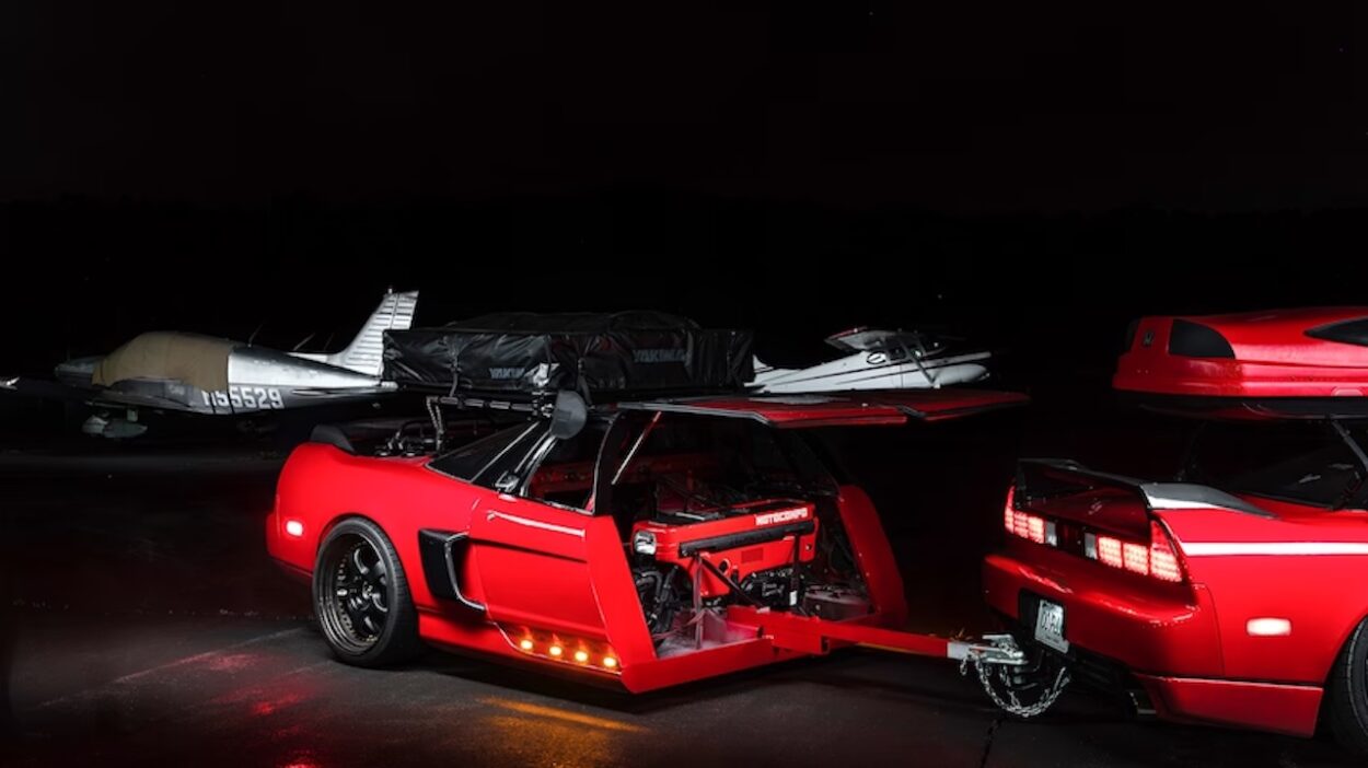 Se l’interpretazione della Honda Acura-NSX aveva scosso gli animi degli internauti, adesso il livello raggiunto è persino più sorprendente. Difatti, ha pure un trailer, dove trasportare la tenda da campeggio. Sostituita da un cassone di carico sopraelevato, adesso ha uno spazio interamente suo nel rimorchio. Mica un rimorchio qualsiasi, non sia mai! Si tratta, infatti, di un rottame proveniente da una seconda NSX.