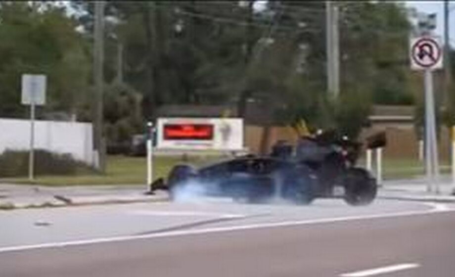 Qualcuno potrebbe pensare che lo abbia fatto apposta, visto che il driver della divertente sportiva inglese è tornato sul pedale del gas con sicurezza. Non credo sia andata così, perché il passaggio sul cordolo spartitraffico non mi sembra cercato, come pure i danni sull’auto che ne sono scaturiti.