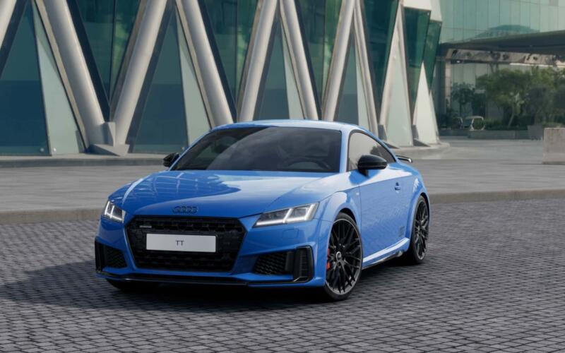 Sebbene nelle foto con cui è stata presentata l’Audi TT sia stata raffigurata nel colore Nogaro Blue, la TT in edizione speciale può tuttavia essere acquistata anche con verniciatura Tango Red o Glacier White. In ogni caso, la TT è dotata di vetri oscurati e del pacchetto S Line Competition, mentre i cerchi neri Audi Sport da 20” hanno un design a 10 razze a Y e sono abbinati a pinze dei freni rosse. Gli interni sono stati arricchiti con una combinazione di pelle e Alcantara con cuciture a contrasto rosse o blu a seconda del colore della carrozzeria.