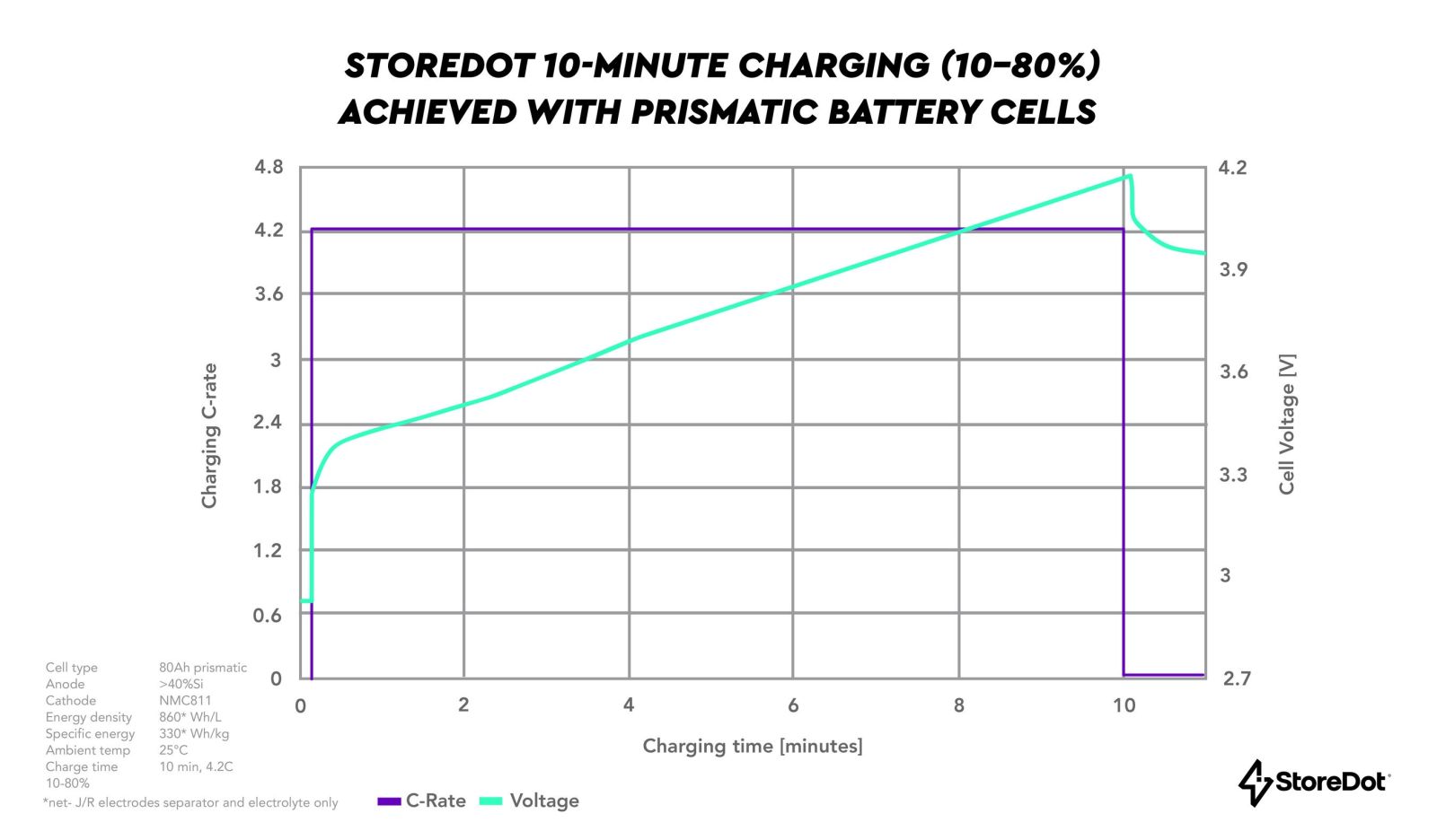 Le batterie di ultima generazione, come quelle su cui sta lavorando Storedot, sono quasi tutte dotate della tecnologia XFC (Extreme Fast Charging), conosciuta anche come “100in5” perché consente di ottenere un’autonomia di 100 km in soli 5 minuti di ricarica. Questo standard è ormai un punto di riferimento per l’industria. Storedot, in particolare, si è concentrata sullo sviluppo della batteria prismatica, ritenendola la più promettente tra le varie soluzioni attualmente disponibili.