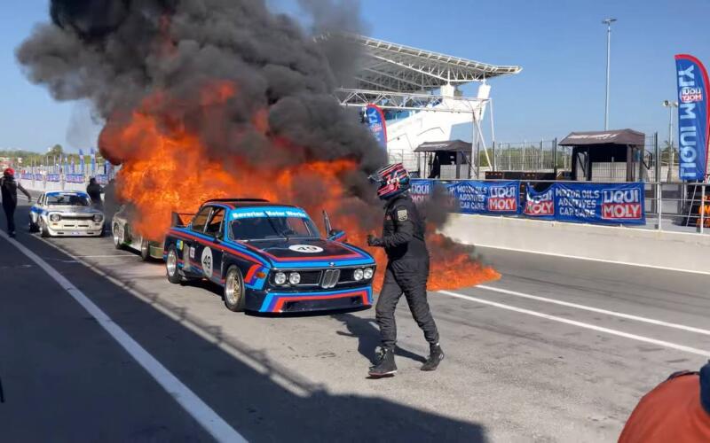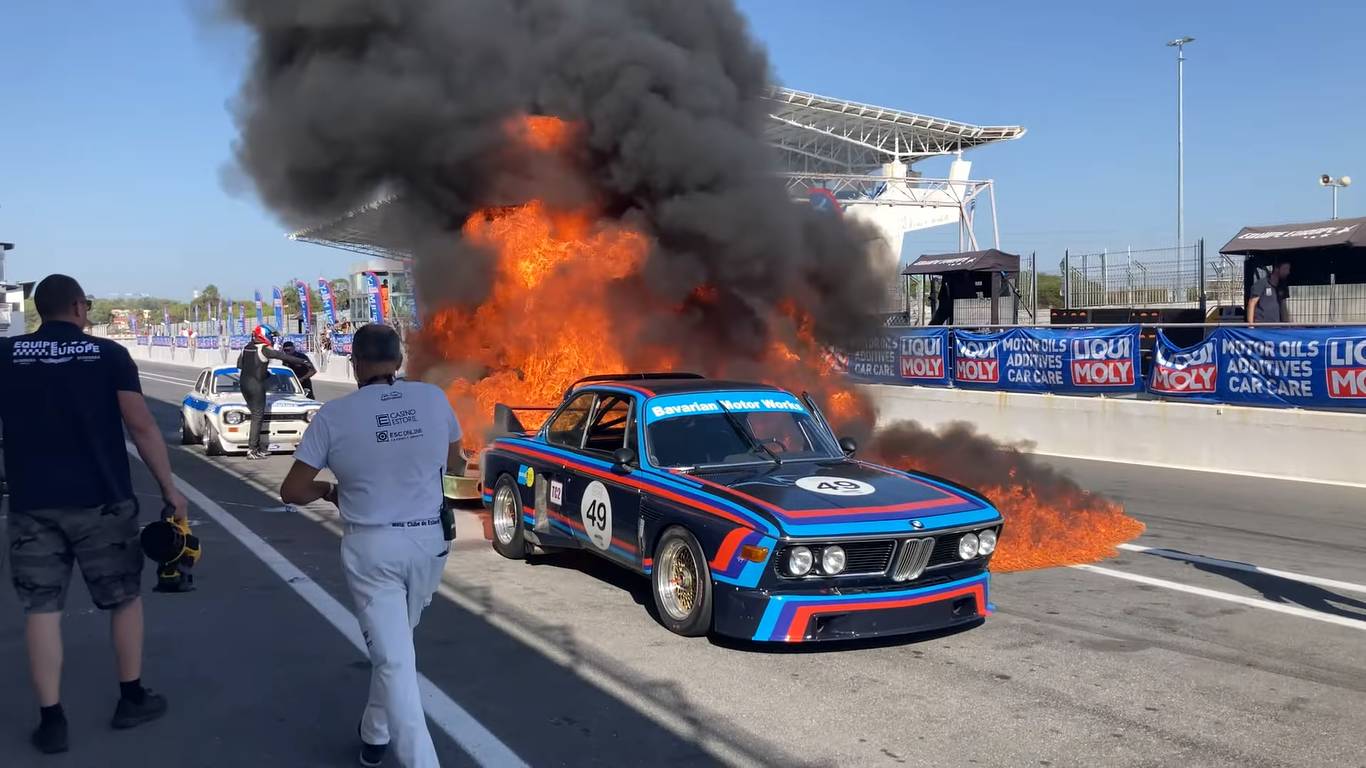 La benzina uscita dal serbatoio della BMW CSL Batmobile si è diretta sotto il cofano motore, caldissimo, della Ford Capri RS 3100, reduce da una tornata di giri in pista. Le alte temperature hanno scatenato le fiamme, che si sono propagate presto alla coppia di coupé, avvolgendole. L’incidente è avvenuto durante l’evento Estoril Classics.