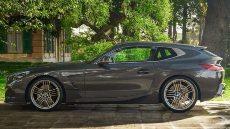 A guardarla bene, questa Touring Coupé è molto raffinata, dai dettagli alla linea del tetto. La particolare vernice dalla sfumatura marrone, chiamata “Sparkling Lario”, è stata creata appositamente per questa coupé e presenta elementi di blu brillante per una maggiore profondità. Le ruote anteriori da 20 pollici e quelle posteriori da 21 pollici provengono anche dall’allestimento di una Z4. Le griglie anteriori, inoltre, riportano ai modelli precedenti della BMW.