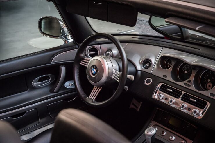 Anche gli interni sono di grande classe, pur se oscurati dalla magnifica opulenza della carrozzeria, che porta gli occhi a concentrarsi sulle linee esterne. Per l’abitacolo, i designer scelsero un’ispirazione retrò, orientata a una semplice raffinatezza. Le distrazioni sono ridotte al minimo, perché qui c’è l’essenziale, coniugato al più alto livello di qualità, anche visiva. Non ci sono elementi che possano turbare la bontà dell’esperienza di guida, di fondamentale importanza su un’auto del genere. Anche questo fa parte del fascino della BMW Z8.