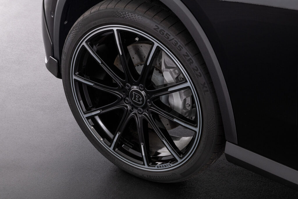 Fin dall’inizio, i dettagli in fibra di carbonio posizionati sul paraurti anteriore danno al SUV un aspetto più dinamico. Il logo dell’azienda è presente in varie parti della carrozzeria, come la griglia frontale e lo spoiler posteriore in poliuretano. Lo si trova anche nel centro delle ruote forgiate a Z, una caratteristica comune alle altre Brabus.