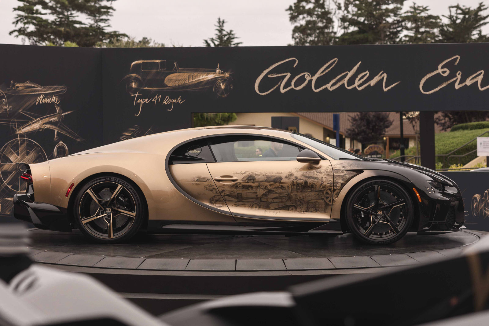 Il progetto Sur Mesure forse più ambizioso proposto fino ad oggi dal marchio d’oltralpe è stata la Chiron Super Sport “Golden Era”, svelata al Monterey Car Week. L’auto, di cui ci siamo già occupati, cattura l’eredità Bugatti attraverso un’intricata serie di 45 schizzi disegnati direttamente a mano sulla sua carrozzeria, per celebrare le pietre miliari della storia aziendale.