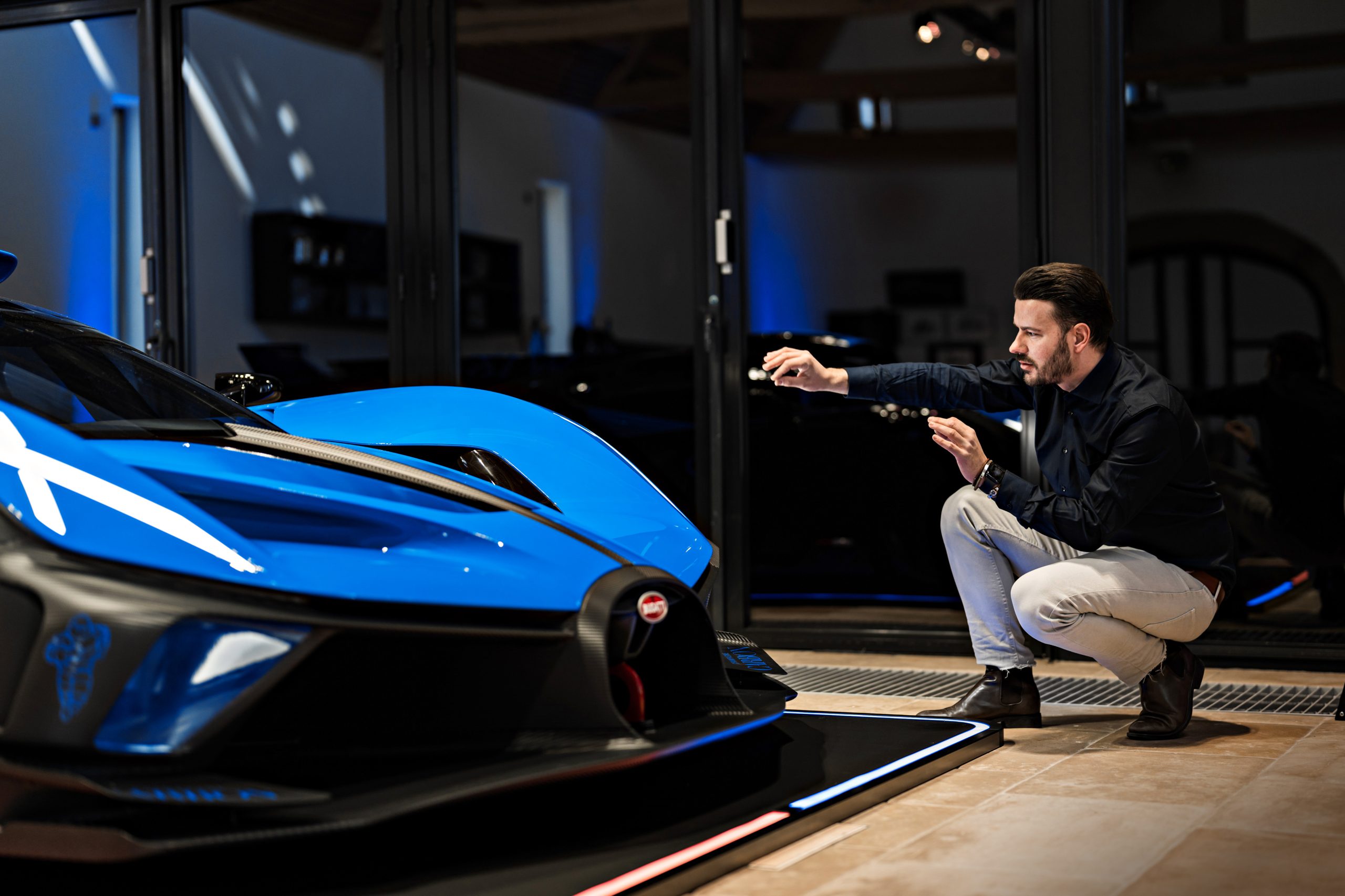 Forti degli stimoli che ne sono derivati, i clienti della Bugatti Bolide hanno potuto affinare e perfezionare il loro esemplare, in collaborazione con Jascha Straub, Sales and Design Executive del marchio. Lui ha guidato ciascun elemento del gruppo nel processo di definizione, discutendo combinazioni di colori storiche e modi per rendere omaggio alle livree del motorsport passato di Bugatti. Uno degli acquirenti ha optato per il Blue bicolore della Le Mans Type 57 G Tank.