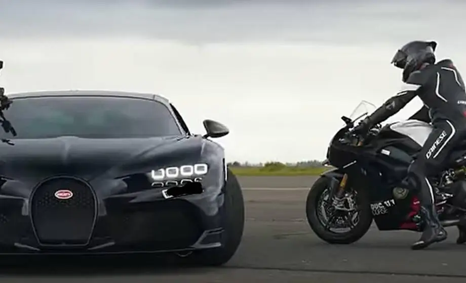 Questa energia, davvero strepitosa, viene scaricata su tutte e quattro le ruote. Facile immaginare l’entità della spinta, tenendo conto anche del peso inferiore alla 2 tonnellate. Alcune cifre aiutano ad afferrare meglio il concetto. La Bugatti Chiron Super Sport accelera da 0 a 100 km/h in 2.4 secondi, da 0 a 200 km/h in 5.8 secondi e da 0 a 300 km/h in 12.1 secondi. Oltrepassa la soglia dei 440 km/h la punta velocistica. A sfidarla, nella drag race organizzata da carwow, ci sono due moto incredibili.