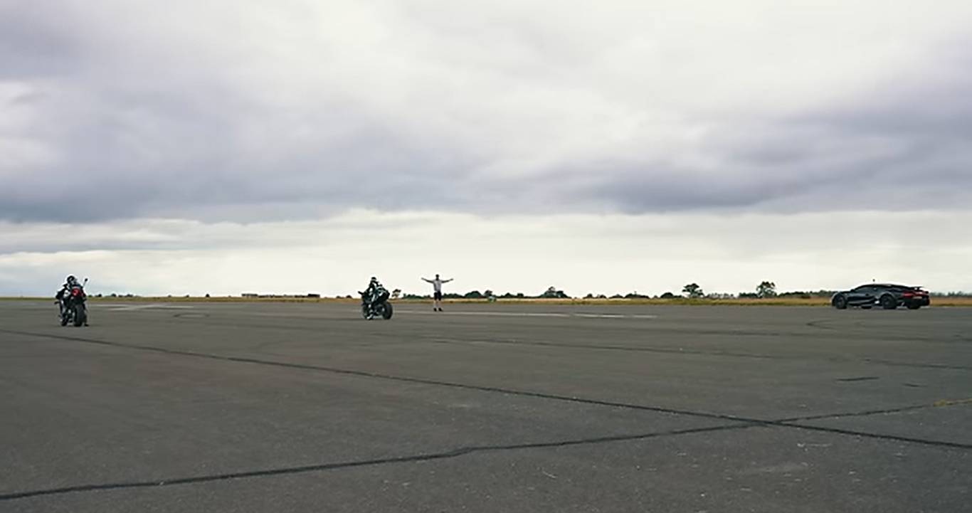Ecco una nuova drag race fuori dai ranghi dell’ordinario, organizzata da quelli di carwow, sempre pronti a stupire con effetti speciali. Protagoniste della più recente sfida organizzata dal noto canale sono un’auto e due moto. L’universo delle quattro ruote è rappresentato da un mezzo speciale: la Bugatti Chiron Super Sport. Una scelta quasi obbligata, vista l’eccellenza delle rivali a due ruote: la Kawasaki H2R e la Ducati Panigale SV2.