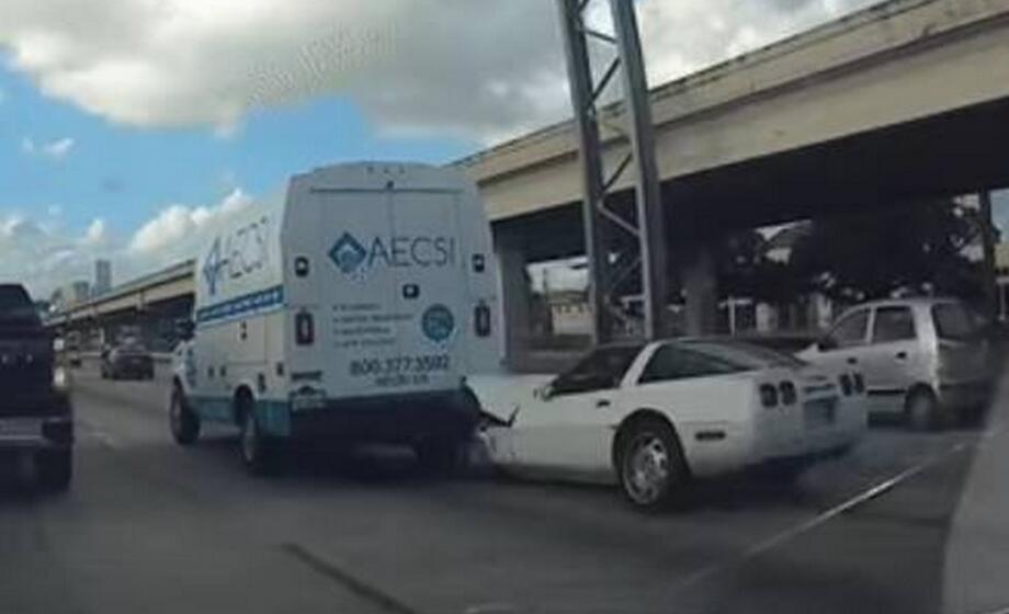 Un incidente ha coinvolto una Chevrolet Corvette C4 in un’autostrada del Texas (USA). Il conducente dell’auto sportiva americana, a un certo punto dell’azione, ha girato a sinistra, per immettersi rapidamente nella corsia centrale. Incredibilmente non ha notato la presenza di un furgone, contro cui si è andato a schiantare. Più facile pensare che, distratto da altro, abbia sterzato in modo inconsapevole. Altrimenti avrebbe fatto un almeno un accenno di frenata o di correzione alla vista del mezzo antistante. In ogni caso, si tratta di una condotta grave e dissennata.