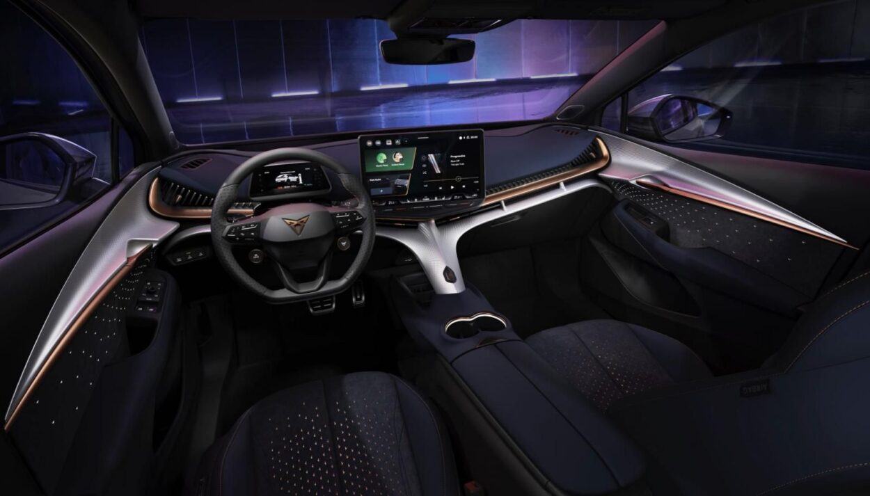 Ma la classe della carrozzerie è seguita da un abitacolo eccezionale. La “spina dorsale”, come la definisce la stessa Cupra, è il pezzo forte. Si tratta di un blocco sospeso, sulla console centrale, che allarga le “braccia” fino ai pannelli delle porte. Lo schermo dell’infotainment è da 15 pollici, c’è anche un display head-up con tanto di realtà aumentata.