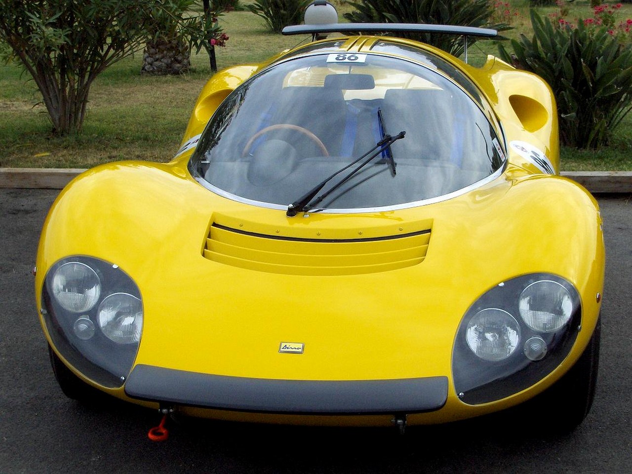 Questa sportiva, vestita di un meraviglioso giallo, fece il suo debutto in società al Salone di Francoforte del 1967. Il telaio è quello della Dino 206 S (s/n 034) da corsa, plasmata dalla Carrozzeria Drogo. Sotto il cofano posteriore trova accoglienza un motore a 6 cilindri, da 2.0 litri, con angolo di 65 gradi fra le bancate, che eroga una potenza massima di 180 cavalli. Molto suggestiva la colonna sonora liberata dal cuore. Del resto, stiamo parlando di un’unità propulsiva proveniente da Maranello, dove sono maestri nell’ingegneria meccanica. La Dino 206 S Competizione Pininfarina è una vera top model a quattro ruote. Una prova dell’eccellenza creativa Made in Italy.