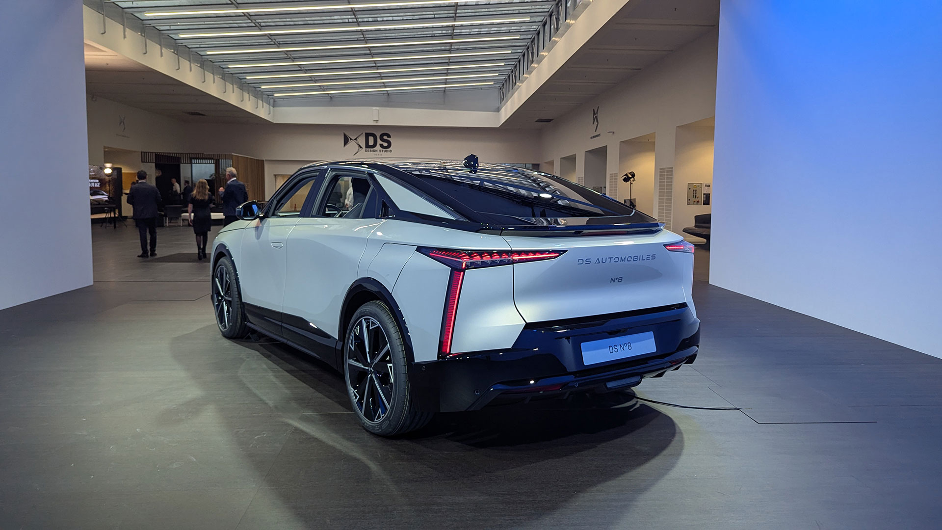 Il design della DS N°8 riflette l’approccio distintivo del marchio. I fari stretti, composti da tre moduli con otto LED ciascuno, e le luci diurne verticali creano un look inconfondibile. La griglia illuminata “DS Luminascreen” e il logo retroilluminato conferiscono ulteriore personalità. Anche l’aerodinamica è curata nei dettagli, con maniglie delle porte a filo o integrate e cerchi progettati per ridurre la resistenza dell’aria.