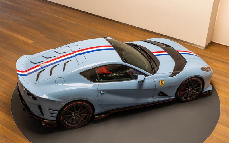 Lo stemma della Scuderia Ferrari impreziosisce i poggiatesta dei sedili con una trapunta quadrata di tappezzeria rossa Aunde Jeans. Se i dettagli fanno la differenza, qui sono stati calibrati bene. Protagonista del trattamento su misura è stata una già citata Ferrari 812 Competizione, sinfonia di potenza e prestigio. Questa sportiva estremizza i concetti della Superfast e regala una danza sfrenata di tecnologia ed emozioni.