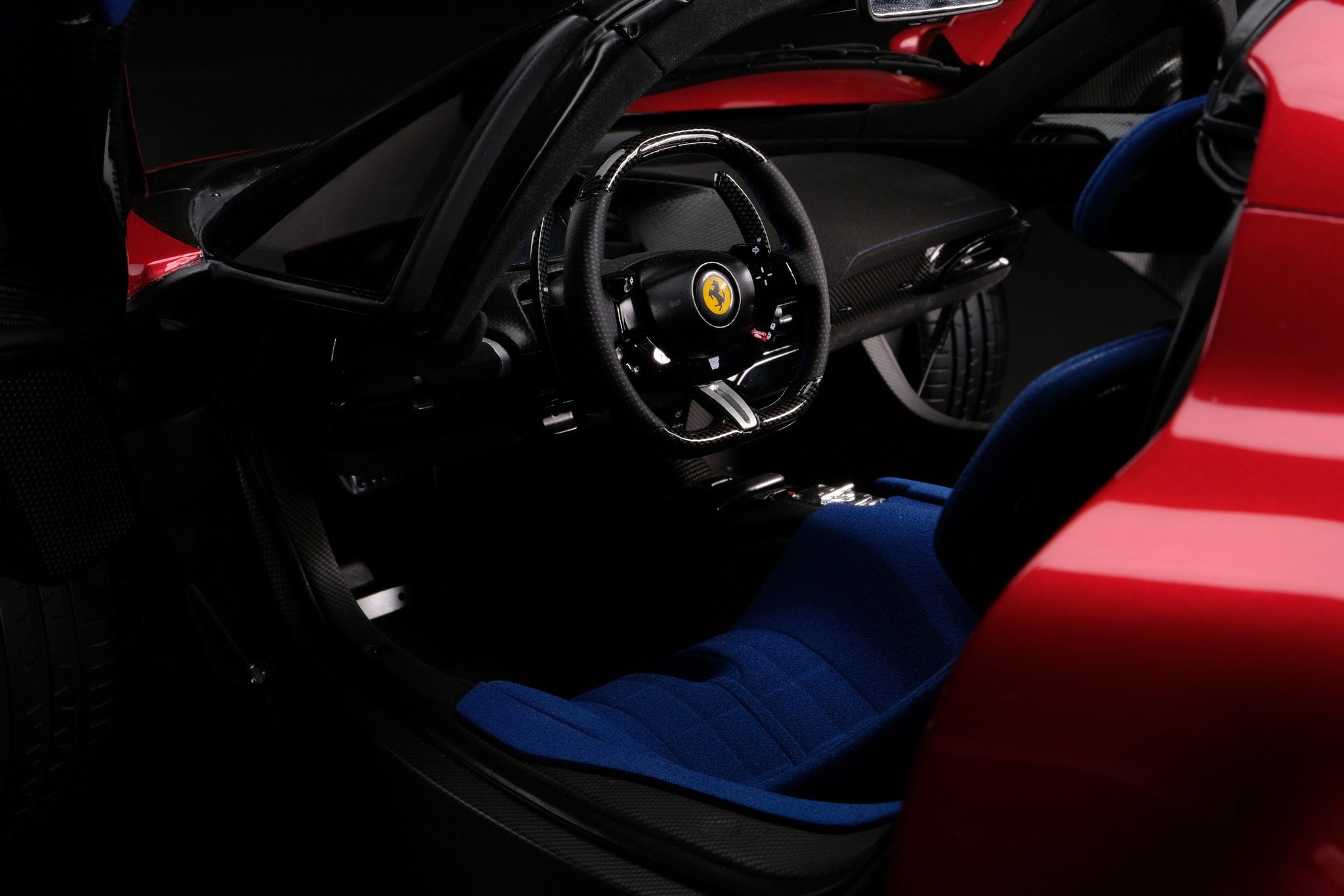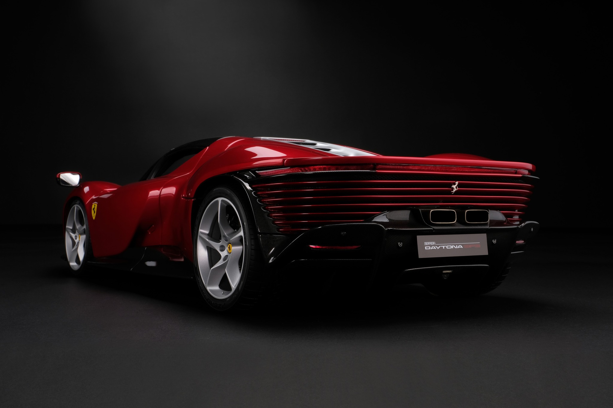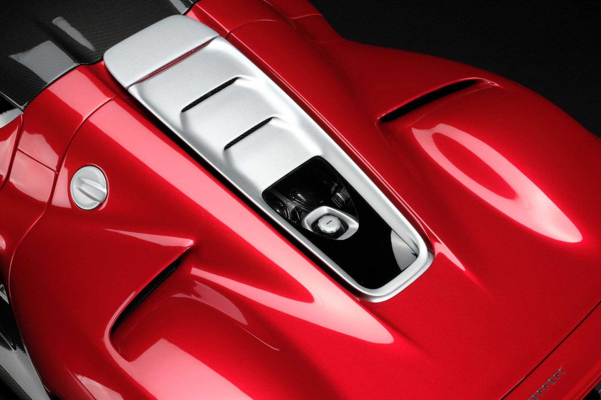 Ogni parte è plasmata con precisione maniacale, sfruttando i disegni originali, le specifiche dei materiali e i codici vernice forniti dalla casa di Maranello. Il risultato è un capolavoro in scala 1:8, lungo oltre 58 centimetri, che stordisce per la precisione della esecuzione. In alcuni scatti si fatica a percepire la differenza con l’auto reale.