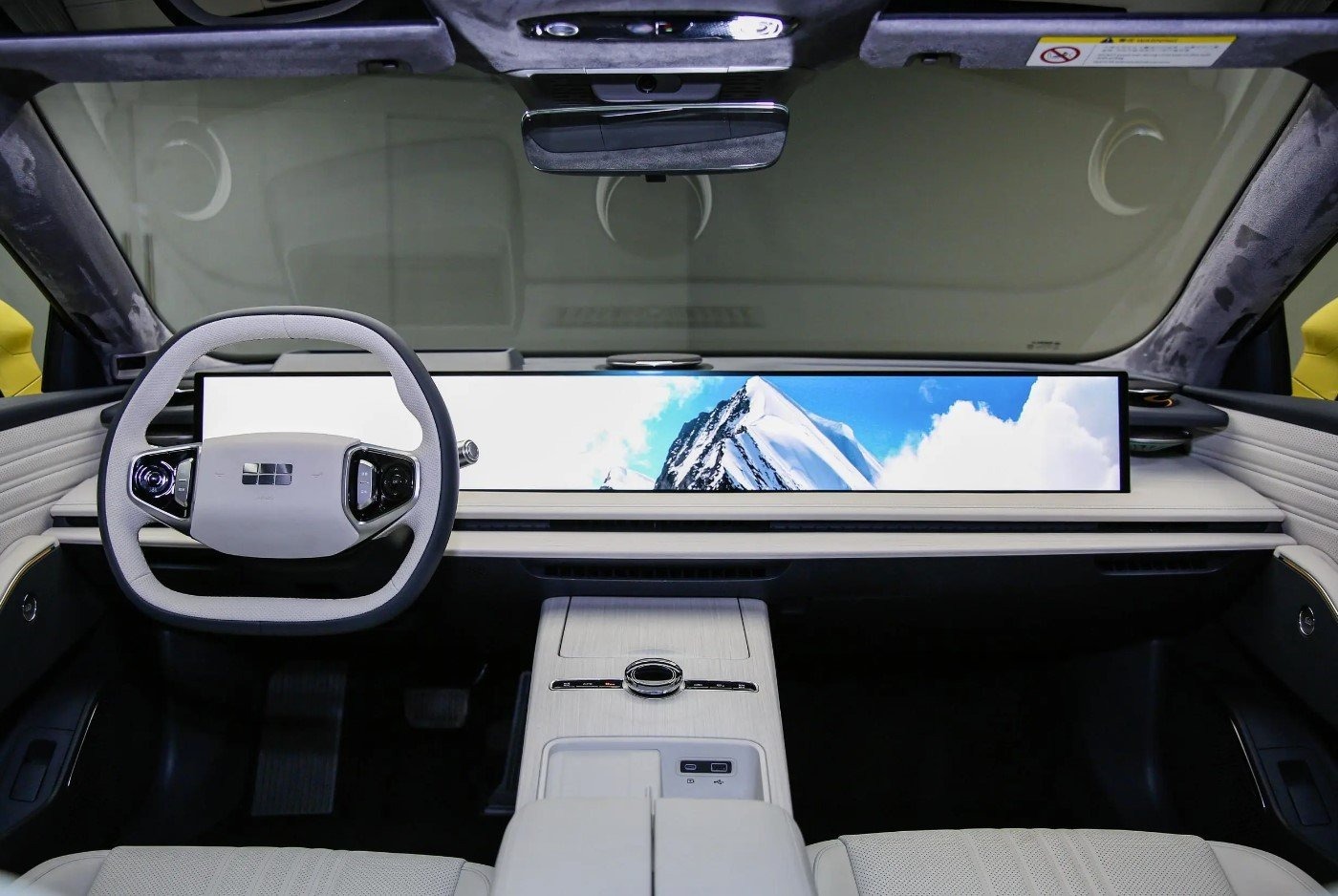 Gli interni della Galaxy E8 si contraddistinguono per uno stile minimalista, con pochi comandi fisici. La plancia ospita un display enorme da 45 pollici con risoluzione 8K, che gestisce strumentazione, infotainment e intrattenimento per il passeggero anteriore. Questo schermo, dotato di tecnologie anti-impronte, antiriflesso, antipolvere e impermeabile, è affiancato da un pad di ricarica wireless sulla console centrale, insieme a un vano portaoggetti. Altri elementi di comfort includono l’illuminazione ambientale, l’Head-Up Display e il tetto panoramico.