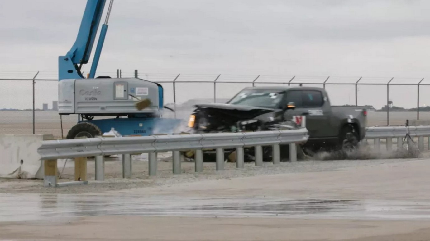 Tornando al veicolo usato per il test di impatto contro le barriere di protezione, giusto illustrarne alcune caratteristiche. Il Rivian R1T è spinto da quattro unità elettriche, che mettono sul piatto una potenza combinata di 835 cavalli e la spaventosa coppia di 1220 Nm. Scatta da 0 a 100 km/h in 3 secondi e può raggiungere un’autonomia massima di 600 km, almeno sulla carta. A voi il video del crash.