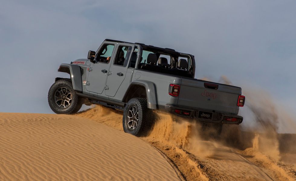Il Gladiator, alimentato da un V-6 da 3,6 litri, offre sempre la scelta tra cambio manuale a sei velocità o un automatico a otto velocità. Il modello Overland con l’automatico impegna 7,2 secondi per raggiungere i 100 km/h. Un po’ più lento della maggior parte dei concorrenti. Ogni Gladiator viene fornito con un pianale per camion da 1,70 metri.