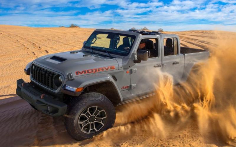 L’aggiornamento per il 2024 e ha apportato alcune modifiche all’equipaggiamento. Dopo il rinnovamento della Wrangler all’inizio dell’anno, la Gladiator ottiene una griglia più rotonda, abbandona il diesel e mantiene il V-6 a gas da 3,6 litri come unico motore. Arriva anche un enorme touchscreen di infotainment da 12,3 pollici, di serie nell’allestimento Sport base. Sono disponibili anche nuovi design dei cerchi e un’antenna integrata nel parabrezza.