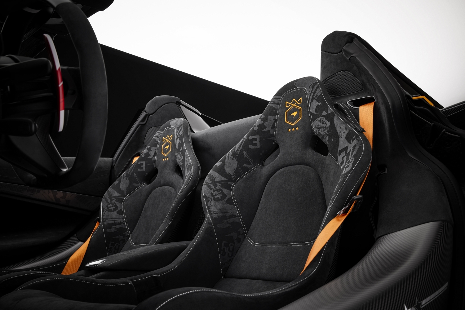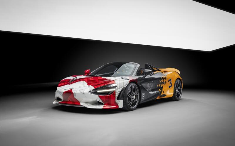 Il tema 3-7-59 è un inno visivo al trionfo nelle espressioni più nobili delle categorie regine del motorsport a quattro ruote. Il numero 3 è un omaggio al successo all’Indy 500 del 1974, il 7 evoca la vittoria di Monte Carlo del 1984, il 59 è un riferimento al successo a Le Mans del 1995. Un trittico di affermazioni di alto rango, immortalato in un’elegante veste pittorica, sulla carrozzeria di una McLaren 750S unica nel suo genere.