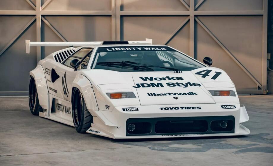 Bianca è pure la Lamborghini Countach trattata da Liberty Walk. Il tuning è deciso, ma per fortuna sembra reversibile. Si notano l’altezza da terra ancora più ridotta, l’appendice alare ancora più marcata, i passaruota più generosamente dimensionati, il paraurti anteriore squadrato e in stile Diablo GT, le prese d’aria laterali modellate con una foggia differente, l’airscoop ed altro ancora. Ne valeva la pena? Il mio parere assolutamente contrario, chi legge i miei post, già lo conosce. E voi, che ne pensate? È un’eresia o no?