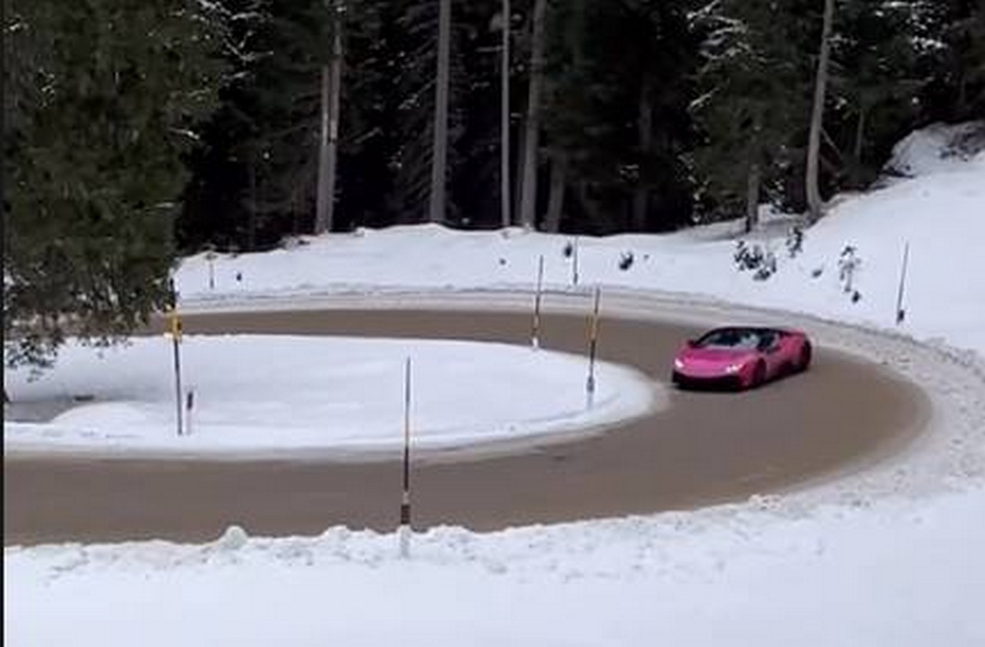 Il controllo è davvero di alto livello: si vede che ci sa fare. Anche l’auto, ovviamente, fa la sua parte, supportandolo al meglio nelle sue dinamiche. Non sappiamo in quale scenario ambientale siano state effettuate le riprese, ma la tela alpina sembra credibile come ipotesi. Nel silenzio della natura, ascoltare le note racing del motore V10 da 5.2 litri della supercar di Sant’Agata Bolognese è ancora più piacevole, perché non c’è nessun fattore di disturbo. La Lamborghini Huracán rosa vola da un tornante all’altro con grande grinta, a dispetto delle aspettative prodotte dalla tinta rosa in stile Barbie della carrozzeria (probabilmente di tratta di un wrapping).