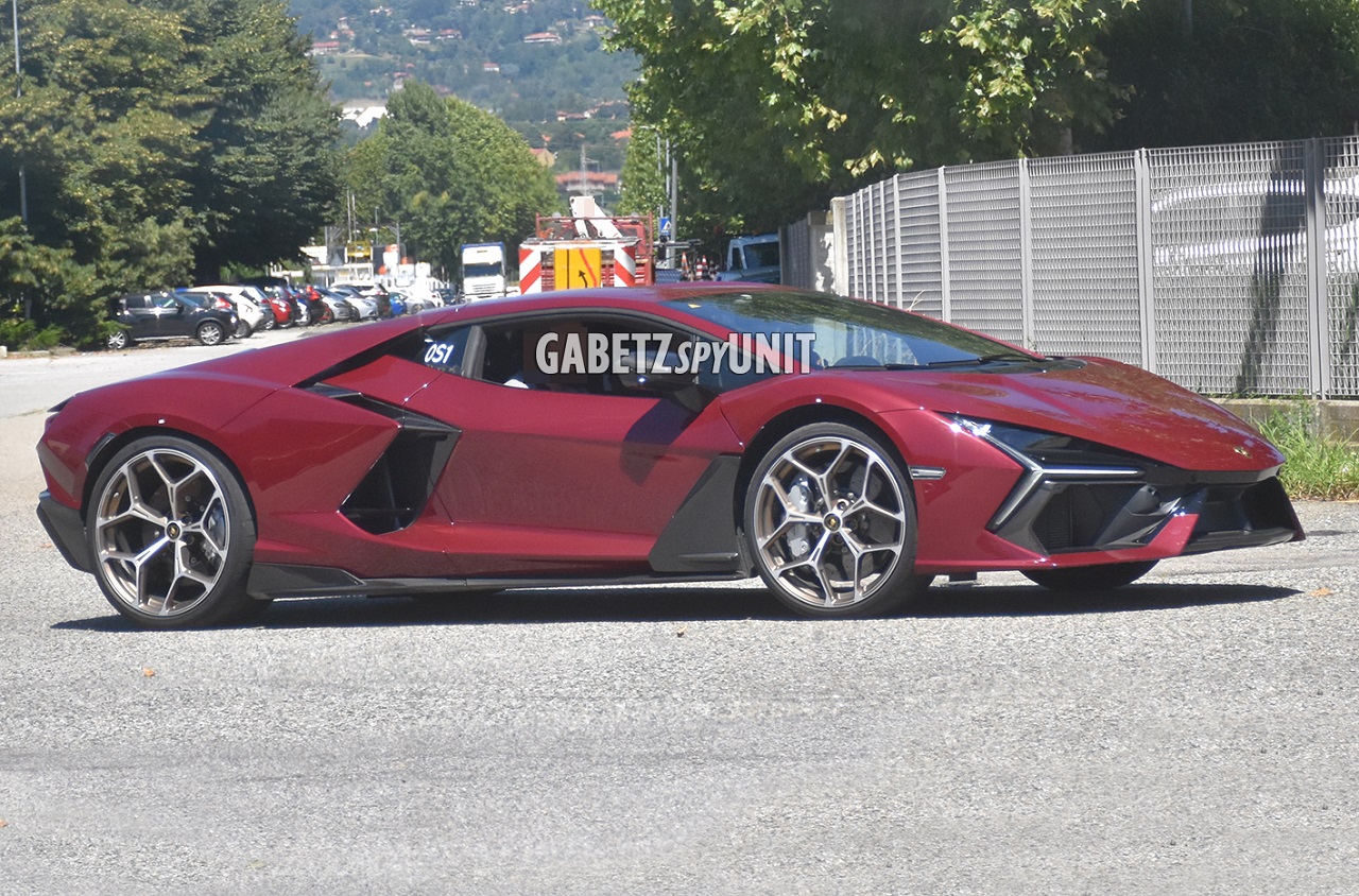 Le foto pubblicate da Walter Vayr di Gabetz Spy Unit mostrano la super car di Lamborghini in strada. La Revuelto ha un design futuristico e aerodinamico. La carrozzeria è bassa e allungata, con una linea di cintura alta e un tetto spiovente. Il frontale è caratterizzato da una griglia esagonale con il logo Lamborghini al centro, mentre il posteriore ha un lunotto verticale e un grande spoiler integrato.
