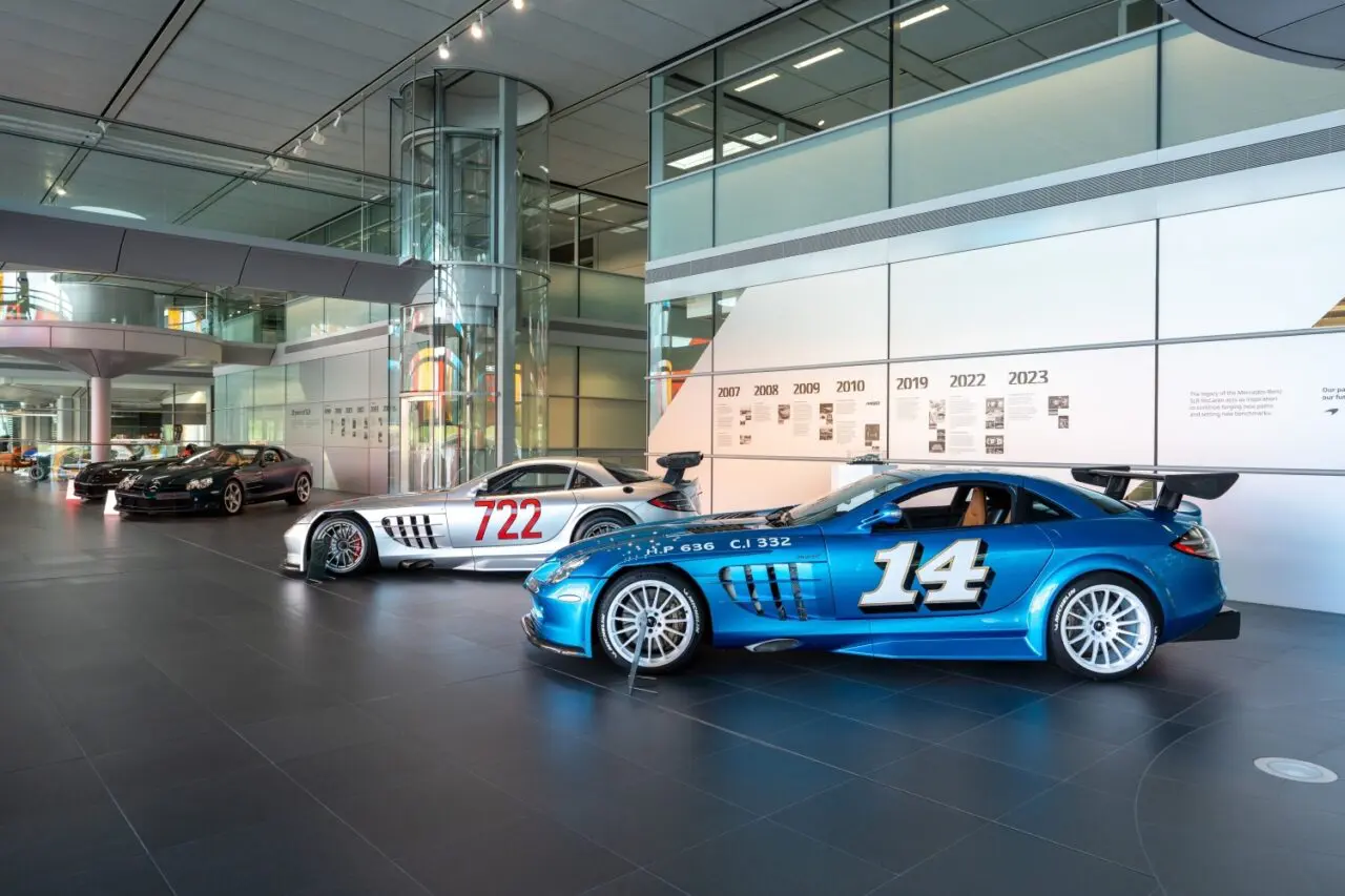 Frutto di una collaborazione ispirata a quella tra Mercedes-Benz e McLaren in Formula 1, questa super-GT pionieristica ha scritto un capitolo speciale nella storia dell’auto. Quattro esemplari del modello sono attualmente esposti presso la sede della casa inglese, all’MTC Boulevard: una SLR Stirling Moss, una SLR by MSO, una SLR HDK e il prototipo SLR 722 GT. Ad accompagnarle, una serie di elementi che narrano la storia di questa vettura e il suo sviluppo.