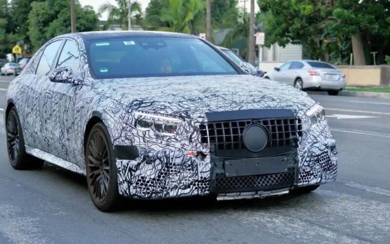 Nonostante la vistosa camuffatura, è piuttosto agevole individuare la silhouette distintiva della nuova Classe E, grazie in parte alla grafica distintiva dei fari posteriori che incorporano elementi triangolari. Ciò che ancor più enfatizza il carattere sportivo di questa vettura è la presenza della celebre griglia anteriore Panamericana e del sistema di scarico doppio posteriore con un design sperimentale.