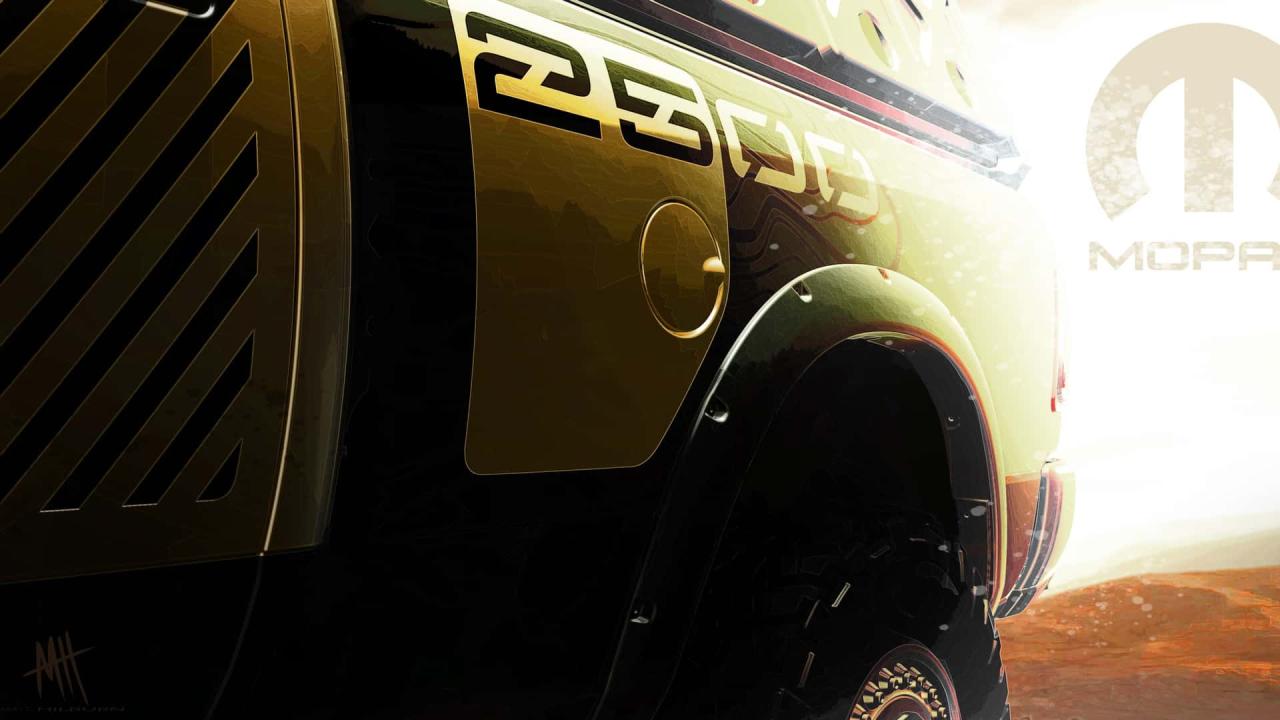 Naturalmente, considerato che almeno per il momento si dispone solamente di due immagini teaser (quelle che scorgete in questo articolo), non ci sono molte informazioni da condividere su questo pick-up. Scorgendo il frontale, si può però notare la griglia del Ram Rebel HD sopra i già citati ganci di traino. Lo stesso design generale della griglia è utilizzato sul Power Wagon, ma un’occhiata più ravvicinata suggerisce invece che questo veicolo ha il motivo a maglie del Rebel. Il teaser del frontale offre anche uno scorcio di luci supplementari montate sul tetto, mentre una seconda immagine mostra il pianale con 2500 in bella mostra. Per questo motivo, si ritiene possa effettivamente trattarsi di un Rebel HD.
