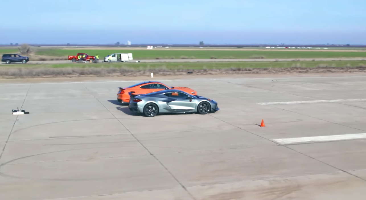 Sfida a “stelle e strisce” fra la Mustang Shelby GT500 e la Corvette Z06. Le due iconiche auto sportive statunitensi si sono affrontate in una U-Drag Race. Si tratta di un confronto diverso dalle classiche gare di accelerazione sul quarto di miglio con partenza da fermo, perché qui, una volta superata la prova, non ci si ferma, ma si fa una decisa inversione del senso di marcia, attorno a un birillo, per tornare indietro a tutta birra. Un modo per mettere alla prova lo scatto, la frenata e la capacità di curvare, tutto in un unico scenario operativo. Altre volte vi abbiamo già proposto dei match del genere.