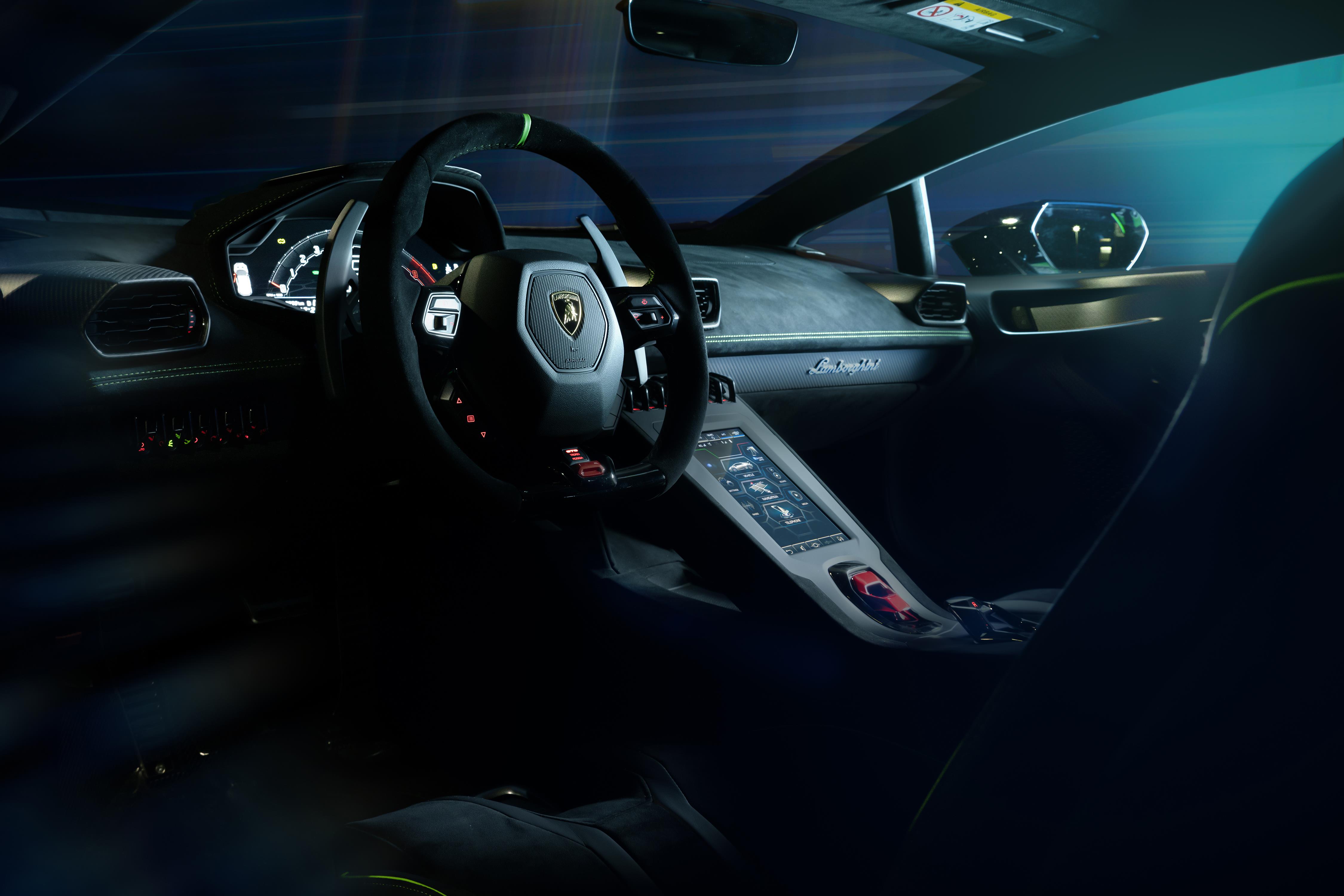 L’abitacolo della Lamborghini Huracán STO SC 10° Anniversario è stato allestito ad hoc, legandolo ulterirormente all’universo racing. Un modo per ribadire l’orientamento alla pista del modello. I sedili sportivi Nero Ade in Alcantara con cuciture Verde Fauns offrono un saldo ancoraggio, anche grazie alle cinture di sicurezza a quattro punti d’attacco. Si nota la presenza di un vistoso roll bar in alluminio. Il rivestimento del pianale in carbonio offre un’ulteriore connessione col mondo delle corse.