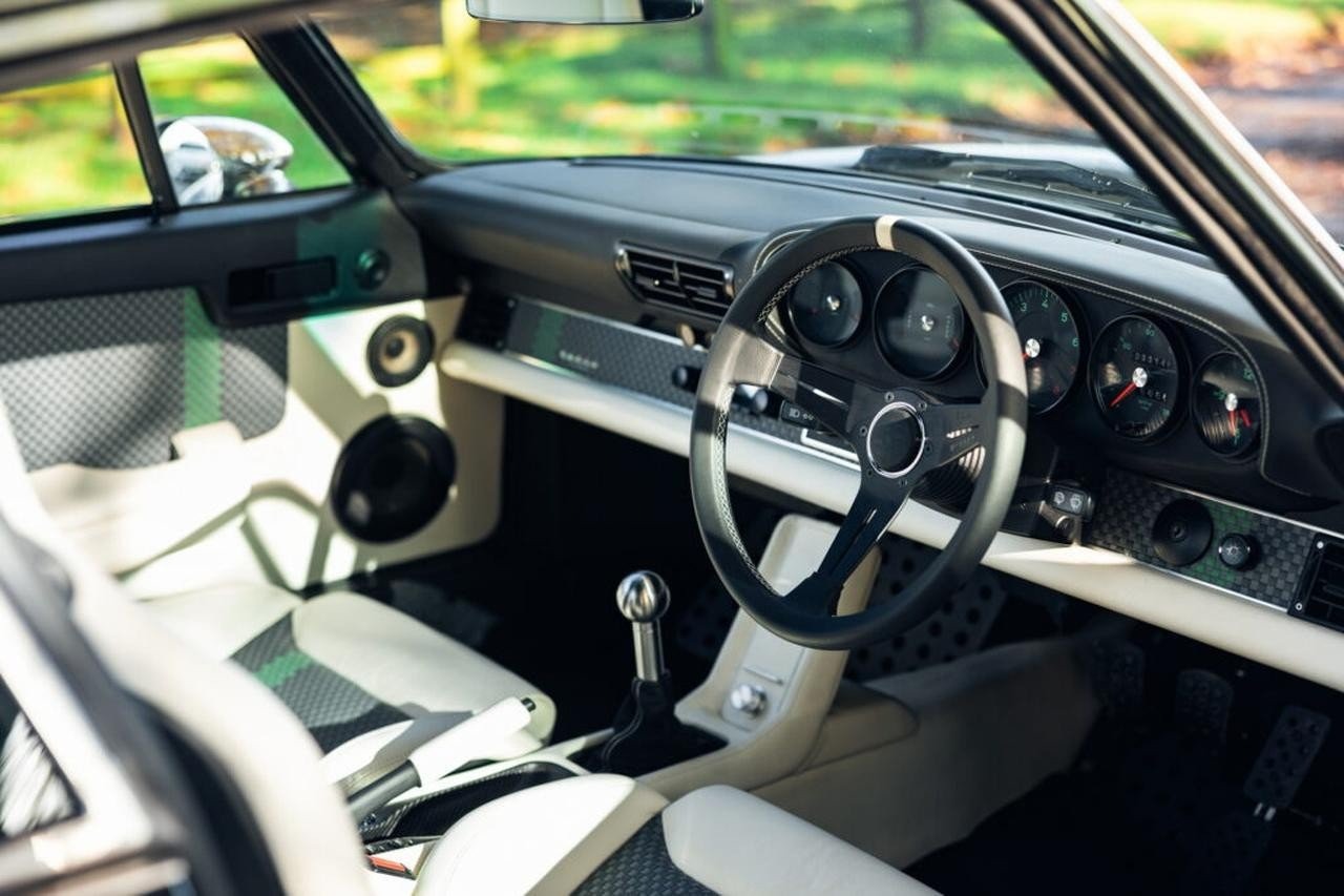 All’interno, la 911 Carrera 2 speciale esibisce una meticolosa attenzione ai dettagli, con abbondante uso di alluminio per i comandi, sedili Recaro CS e volante Nardi Deep Dish. L’abitacolo mescola pelle Muslin con Alcantara e pelle intrecciata. Vi è anche un sistema infotainment vintage con Bluetooth, connesso a un sistema audio Focal di alta qualità.
