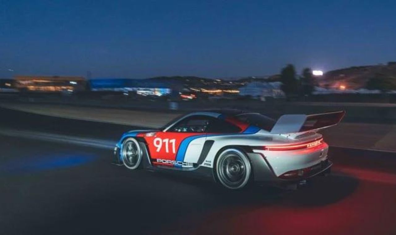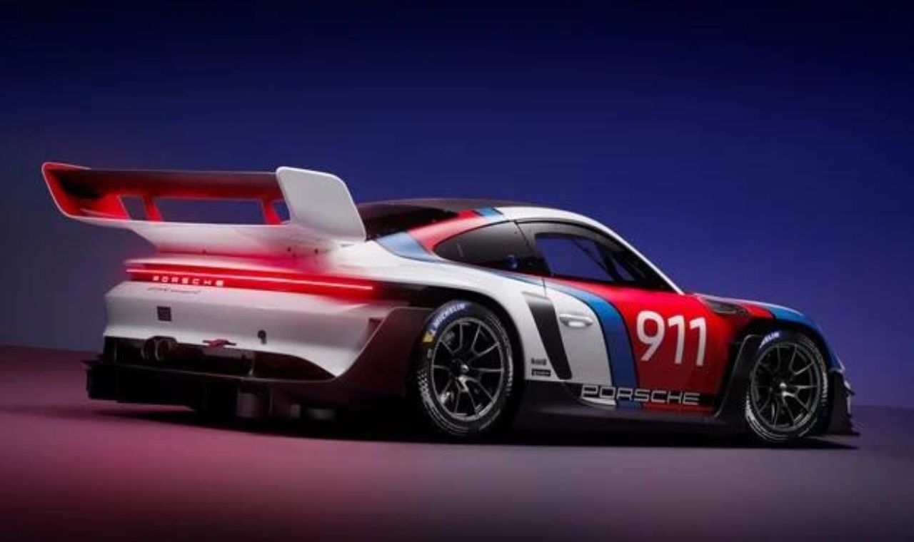 Partendo dalla solida base tecnica della GT3 R, il team di progettazione ha apportato una serie di miglioramenti significativi. Le linee della carrozzeria sono state affinate, con un’enfasi particolare sull’aerodinamica. Per esempio, il paraurti anteriore vanta prese d’aria di dimensioni generose, che migliorano il flusso d’aria. Inoltre, i passaruota anteriori sono stati sagomati e gli specchietti retrovisori tradizionali sono stati sostituiti da telecamere. Sul posteriore, un imponente spoiler richiama alla mente il glorioso design della Brumos Porsche 935/77, migliorando ulteriormente l’aderenza dell’auto. Sempre sul posteriore è presenta una lunga barra luminosa a LED che presenta la scritta “Porsche”.