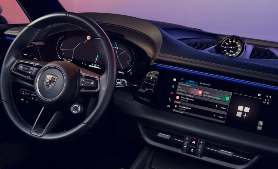 La Macan elettrica sarà dotata di un innovativo Head-Up Display che proietta informazioni essenziali, inclusi i dati di navigazione. Il sistema infotainment opera su una piattaforma basata su Android Automotive, con un App Center dove gli utenti possono scaricare applicazioni come Spotify, Amazon Music, TuneIn Radio e YouTube. Il sistema di navigazione è stato perfezionato per calcolare percorsi ottimizzati considerando l’autonomia residua e le pause per la ricarica. Il selettore della trasmissione è posizionato tra lo schermo della strumentazione e quello dell’infotainment.