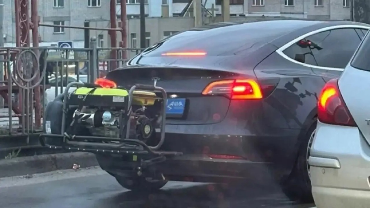 Tesla Model 3 con generatore diesel avvistata in Ucraina: tante domande (e nessuna risposta) sulla sua vera natura