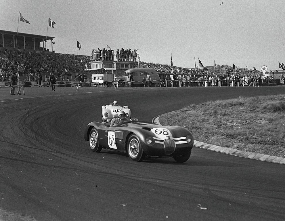 La Jaguar C-Type era un vero capolavoro. La prima auto da corsa rifinita grazie al lavoro nella galleria del vento, la prima a utilizzare serbatoi di carburante a “sacchetto” (direttamente dal mondo dell’aviazione). È stato anche il banco di prova per i rivoluzionari freni a disco Dunlop. Il telaio in acciaio costituiva la spina dorsale di quest’auto. La carrozzeria invece era leggera e in alluminio, con una struttura sottile e aerodinamica progettata da Malcolm Sayer, e il motore era un Jaguar sei cilindri in linea.