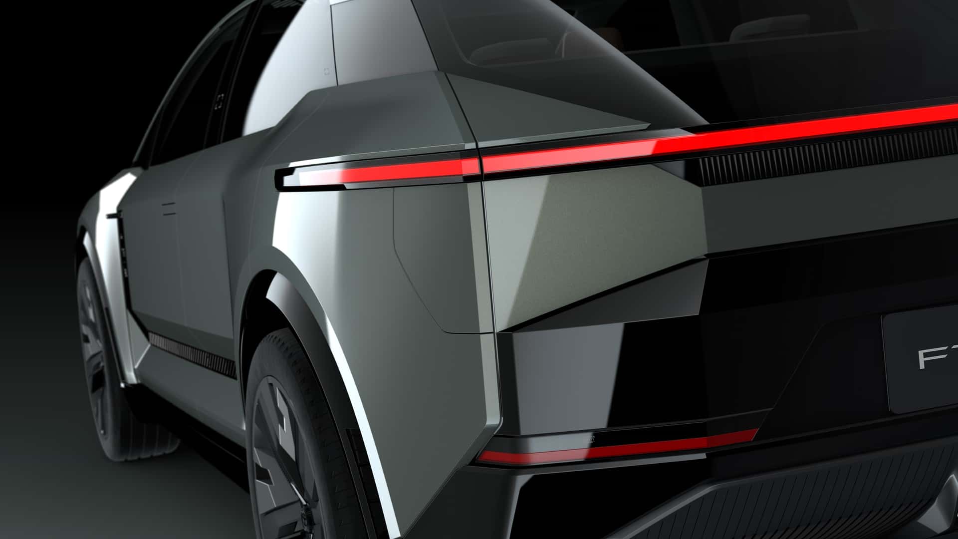 Toyota ha diffuso una serie di immagini rivelando la prima di queste due novità: la FT-3e, un SUV coupé caratterizzato da un lunotto fortemente inclinato, fiancate dalle forme tese e un sistema di illuminazione posteriore basato su luci LED che abbracciano l’intera sezione posteriore. Secondo quanto dichiarato da Toyota, questo concept unisce uno stile futuristico e una gradevole estetica, pur mantenendo linee pulite e minimaliste. Una particolarità degna di nota è il display posto sulla parte inferiore delle fiancate, che offre varie informazioni importanti come il livello di carica della batteria, la temperatura interna e la qualità dell’aria nell’abitacolo.