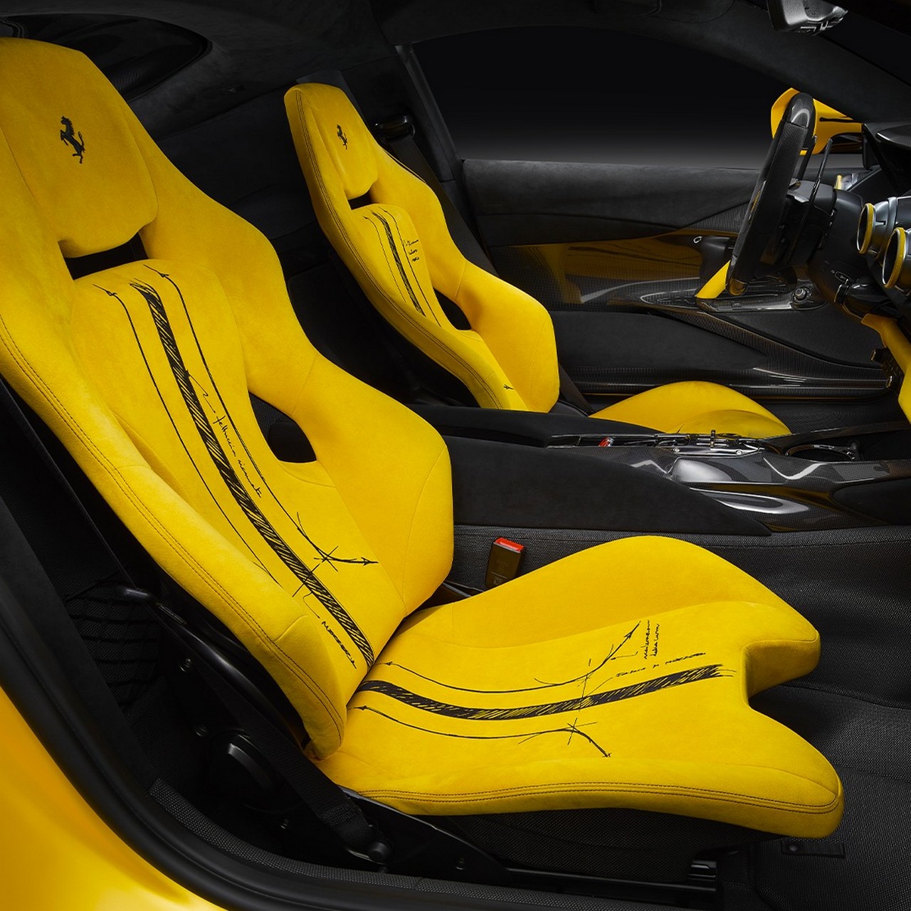 A passare sotto il martello del banditore sarà una Ferrari 812 Competizione unica nel suo genere, sviluppata dal reparto Tailor Made del “cavallino rampante”. Sulla carrozzeria in Giallo Tristato dell’auto sono state riprodotte le linee di stile delle bozze progettuali, tracciate in Nero DS Sketch opaco. Queste tornano in scena nell’allestimento dell’abitacolo, vestito con un’Alcantara di nuova generazione.